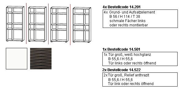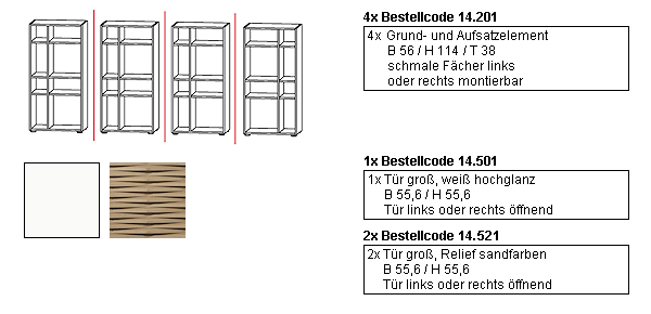 Bestellen Sie die oben abgebildete Kombination (ohne Dekoration) schnell und einfach indem Sie die Kombination mit dem Bestell-Code: 14.156 in Ihren Warenkorb legen.